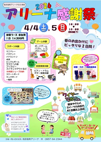 島原復興アリーナでは、今年も地域の皆様への感謝を込めて「アリーナ感謝祭2026」を開催します。