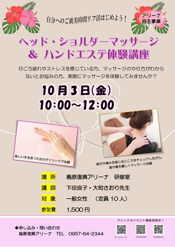 ヘッド・ショルダーマッサージ&ハンドエステ体験講座 参加者募集中!NEWS