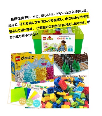 島原復興アリーナに新しくボードゲームが入りました。加えて、子ども用レゴやブロックも充実し小さなお子様からどなたでも安心して遊べます。ご家族でのお出かけにもピッタリです。ぜひお立ち寄りください。会議室1室1時間150円~利用できます。
