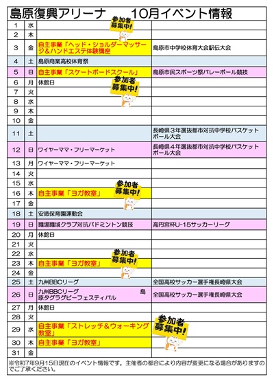 日時 10月3日(金)10時~12時場所 島原復興アリーナ 研修室