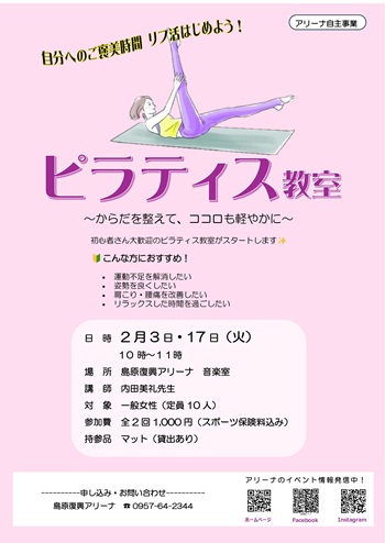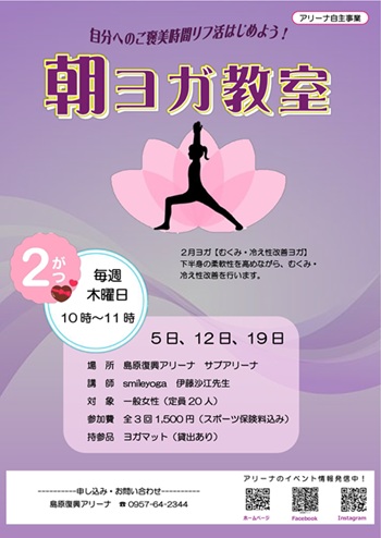 日時 2月3日・17日(火曜日)10時~11時場所 島原復興アリーナ 音楽室