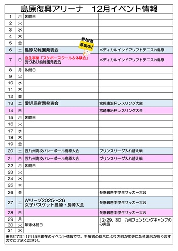 ※令和7年11月15日現在のイベント情報です。主催者の都合により内容が変更になる場合がありますのでご了承ください。